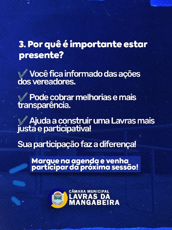 Junte-se a nós na Sessão Ordinária da Câmara Municipal e exerça sua cidadania: