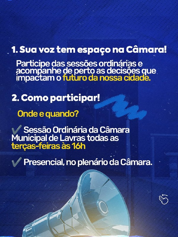 Junte-se a nós na Sessão Ordinária da Câmara Municipal e exerça sua cidadania: